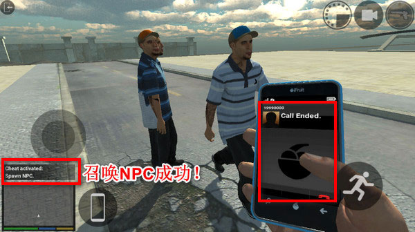 5、将号码打出去之后,稍等一会儿,如果左下角出现提示,那么作弊码就输入成功了!抬头再看,人已经被你召唤过来了。