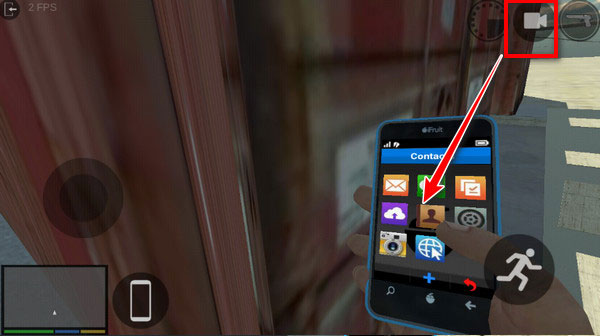 2、建议切换到第一人称更方便看手机菜单,我们点击这里手机中的通讯录图标