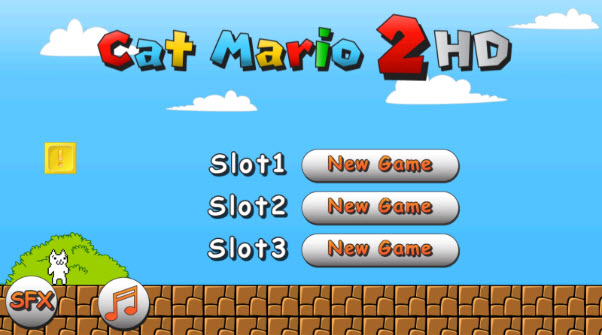 1、在本页面下载安装超级猫里奥游戏,打开。游戏为玩家准备了3个档案位,选择其中1个开始即可。