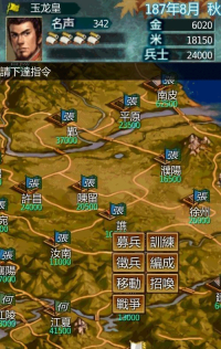6、声望越高代表实力强大可以招募更多的士兵,指令书也多。声望要民忠高和城池数量多,还要其他 对百姓有利的事情。金每年1,4,7,10是收入的时候,金的收入与城市商业值有关。米每年10月收入,与农业值有关,战争和平时都会消耗,没有米将士忠心下降。