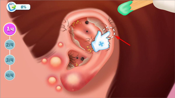 1. 玩家进入游戏后,首先会进入新手关卡,主要任务是引导玩家学习如何为病人清理耳朵上的污垢和发炎部位;