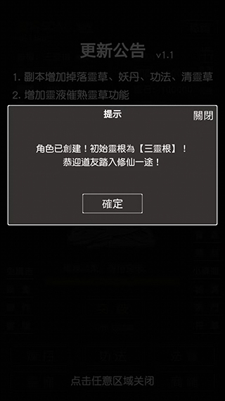 2、进入游戏后,会自动创建一名角色和获得初始灵根,