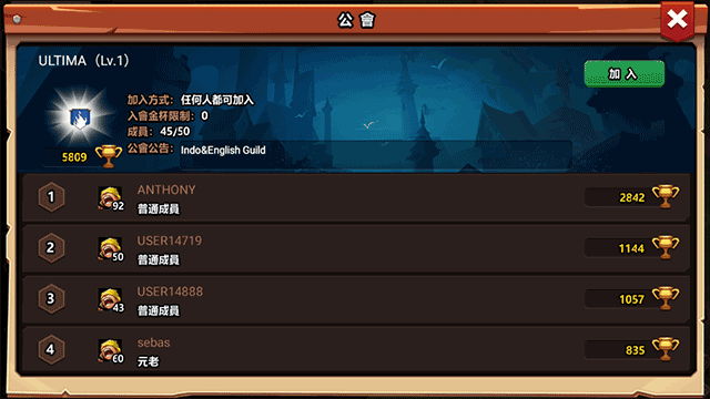 7、在公会界面,大家可以在看清楚公会要求后选择并点击“加入”的按钮选项来加入其中;