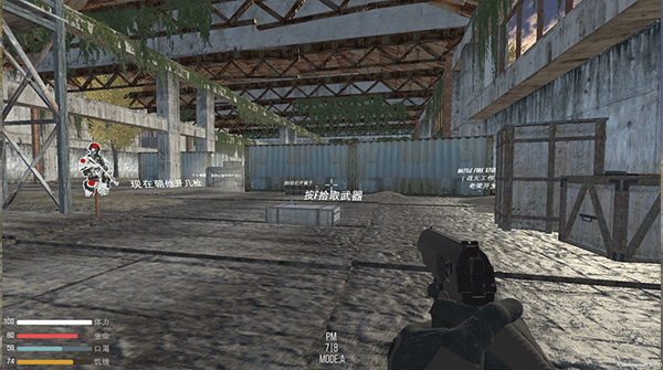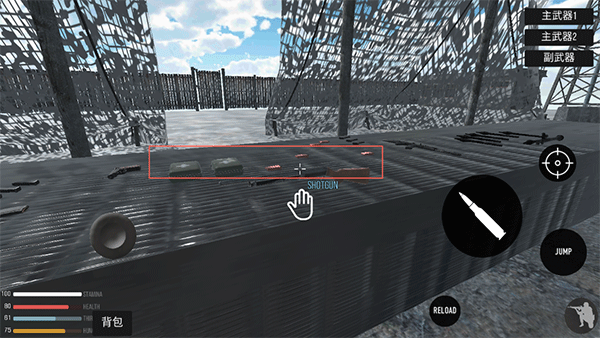 1. 进入游戏后,在帐篷里的桌子上,能看见有大量枪支与子弹,当靠近出现手掌图标时,点击就能拾取。