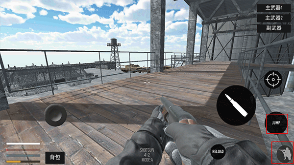 4、点击右侧的“jump”能够实现跳跃操作,点击人像图标则可完成蹲下动作。