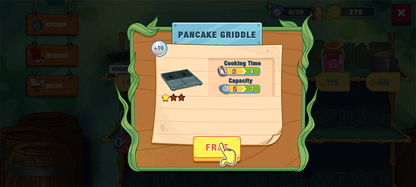 5、然而,不少厨具和装饰的升级时间极短,这一情况设计欠佳,致使游戏过程中频繁出现卡关现象。