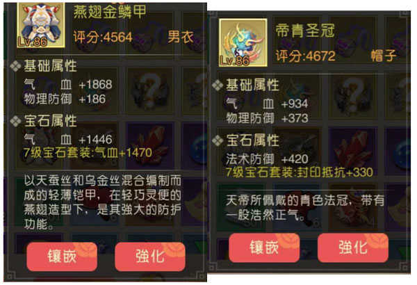 衣服&帽子:衣服与帽子加的都是气血与物防,其实防具的两类属性都有主副区别,衣服的主属性为气血,帽子的主属性为物防。
