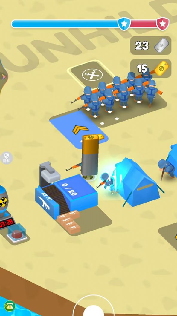 《模拟野外求生》最新版,是一款相当热门的生存冒险类手游。它有着极为经典的生存战斗玩法,游戏里玩家会被分为两个阵营。在此,大家必须持续进行实战,因为提升自身实力才是明智之举。此外,还得招募更多士兵,如此方能展现出你们最为强悍的作战实力哟。