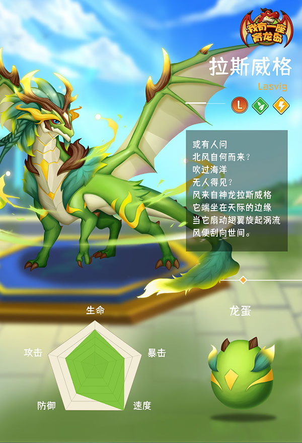 可以使用两条已有的龙进行培育,根据两只龙的属性搭配可获取新的龙种。低稀有度的的龙可以培养出高稀有度的龙,龙岛上最稀有的传奇龙也可以在培育中获取。未获取的龙会在界面上方显示为黑色剪影,方便玩家进行搭配解锁。