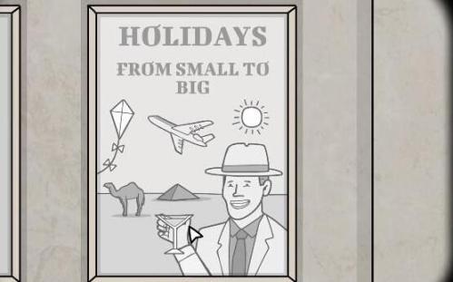 5、轻点墙面上的画,依照酒杯、帽子、风筝、骆驼、飞机、金字塔、太阳这样的顺序操作,便能获取一把钥匙。