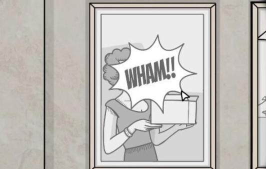 6、将泡泡糖给劳拉吃,然后用泡泡糖在空白的板子上粘住海报。