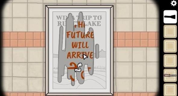 7、返回到与婴儿车这里,在如图的墙上将纸刮下来可以显示未来将到来的字样。