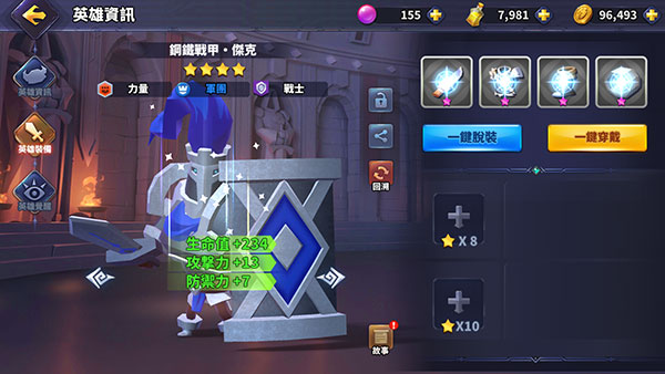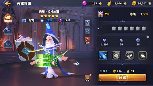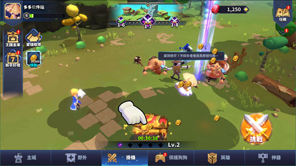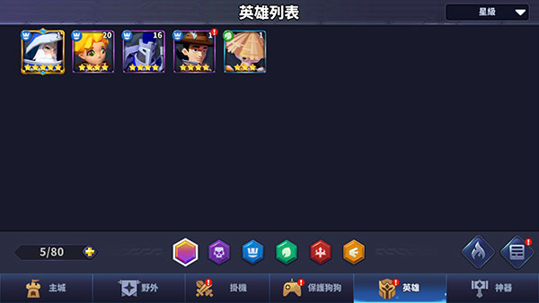 2、通过挂机放置所获得的资源即可用来提升英雄等级。