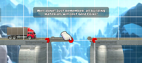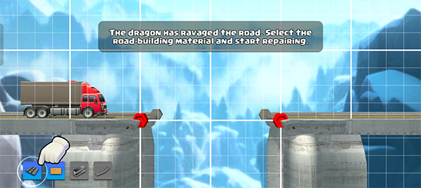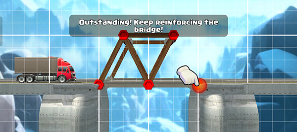 4、最后便是检验桥梁是否合格的环节。待桥梁建造完成后,点击右下角的行车按钮,若货车能安全通过,此关卡即算完成。