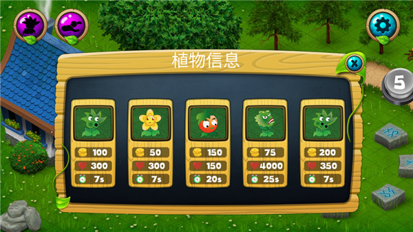 4、植物的选择和关键植物的种植都非常的重要,影响了前期的发展和后期的通关流程,玩家需要慎重布阵,以获得游戏的胜利!