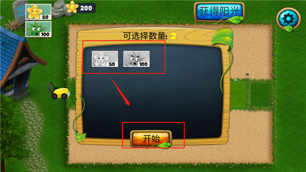 5、进入游戏后,挑选自己所需的植物,点击“开始”。