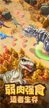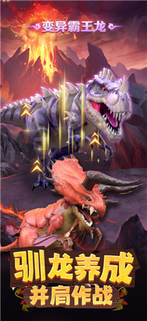 2、游戏中存在数十种源自史前的蛮荒恶兽,通过多样途径对它们进行收集与驯化,这些恶兽就能加入你的防御军团,助力你组建强大的恐龙军团,一同守护家园!